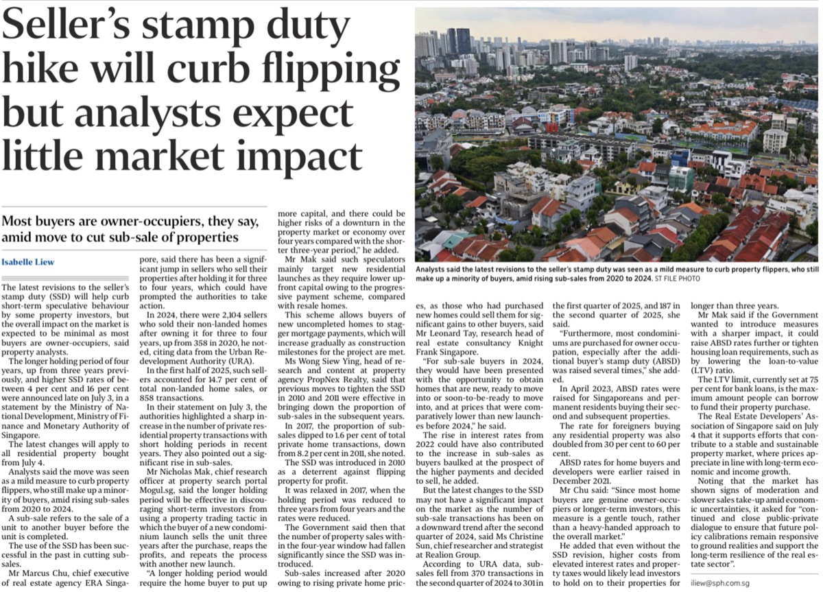 Nicholas Mak from ERA put it best: “Most buyers are owner-occupiers, they say, amid move to cut sub-sale of properties.” The vast majority of property transactions will continue as normal because most people are buying homes to, you know, actually live in them.