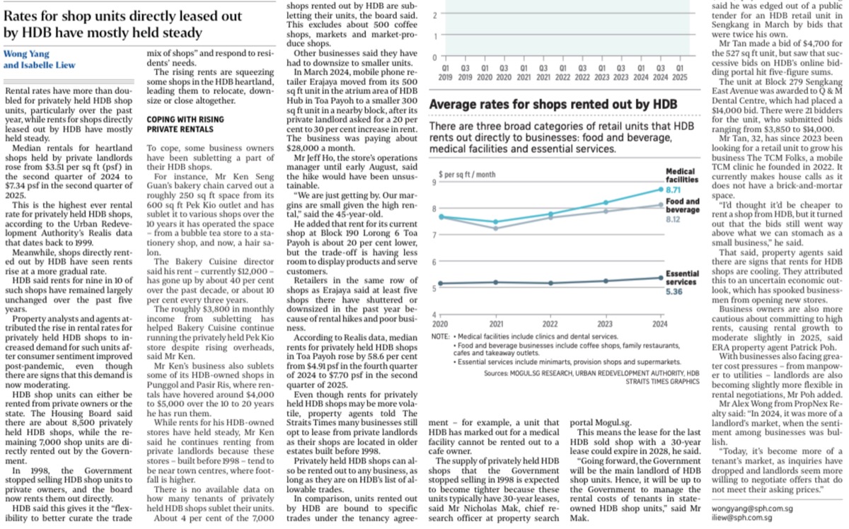 - HDB-leased shops (rented directly from HDB via tender) look comparatively stable, so the pain is uneven across the market.