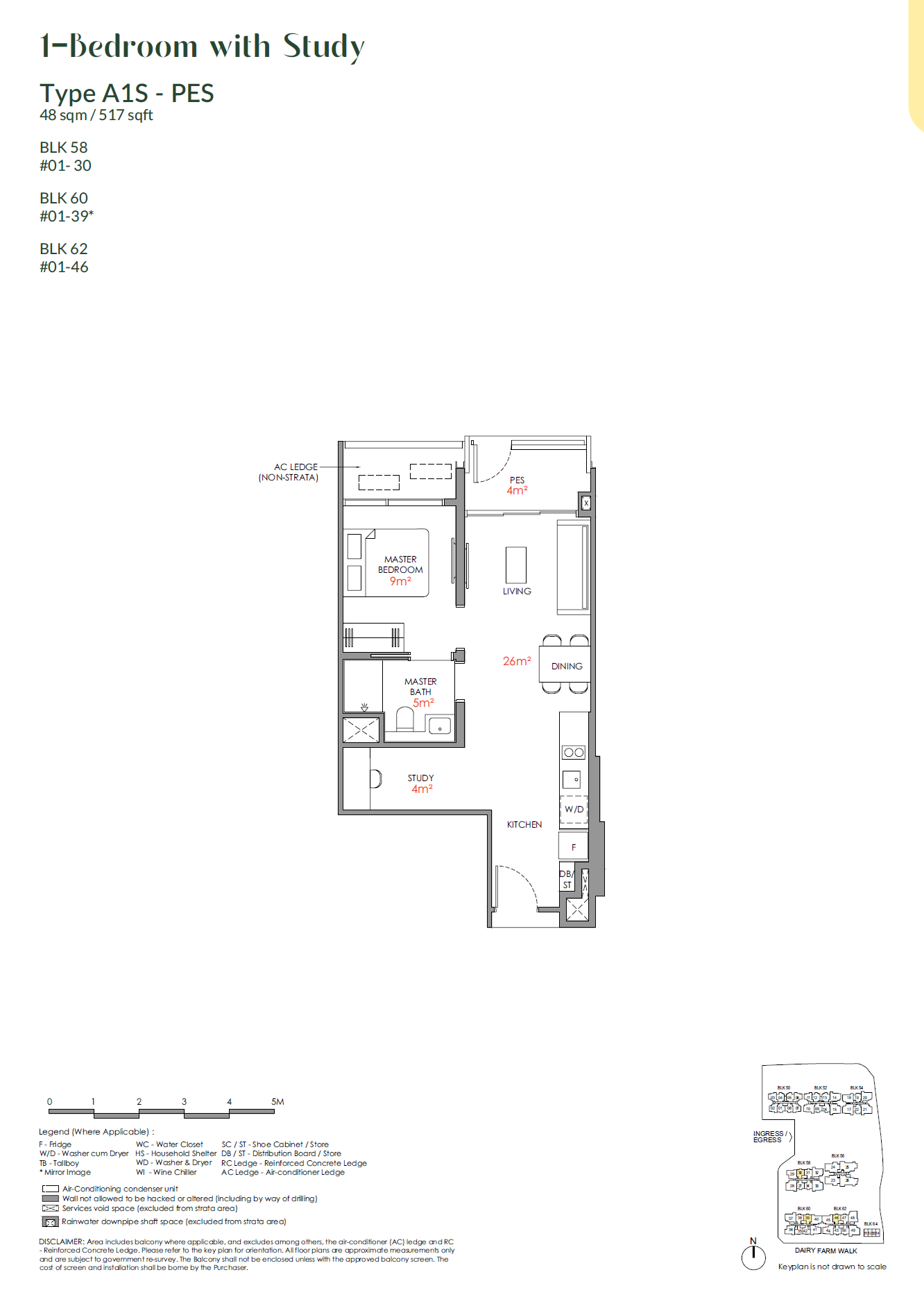 | 1 BEDROOM with STUDY | #01-30 | $998,000 | 517 | $1,930 |