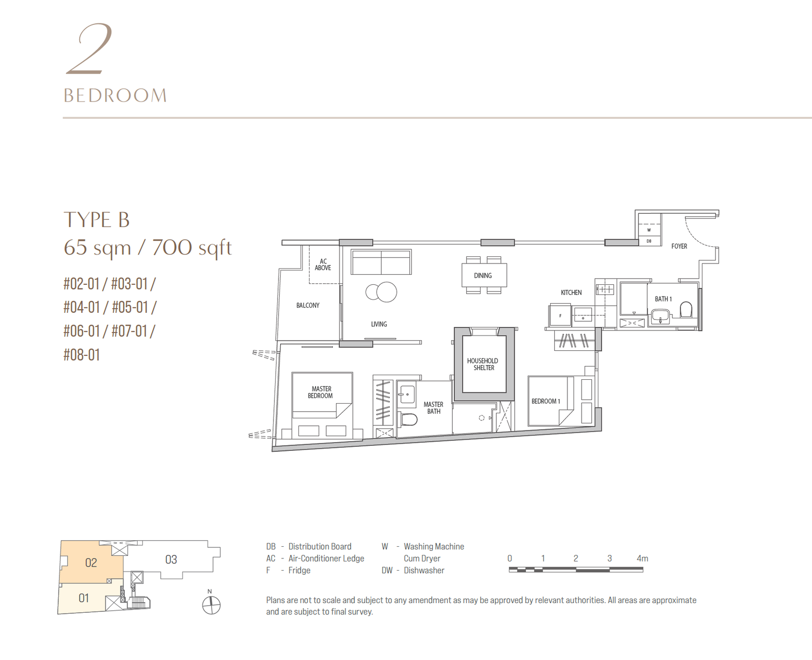 | 2 Bedroom | #02-01 | $1,483,762 | 700 | $2,120 |
