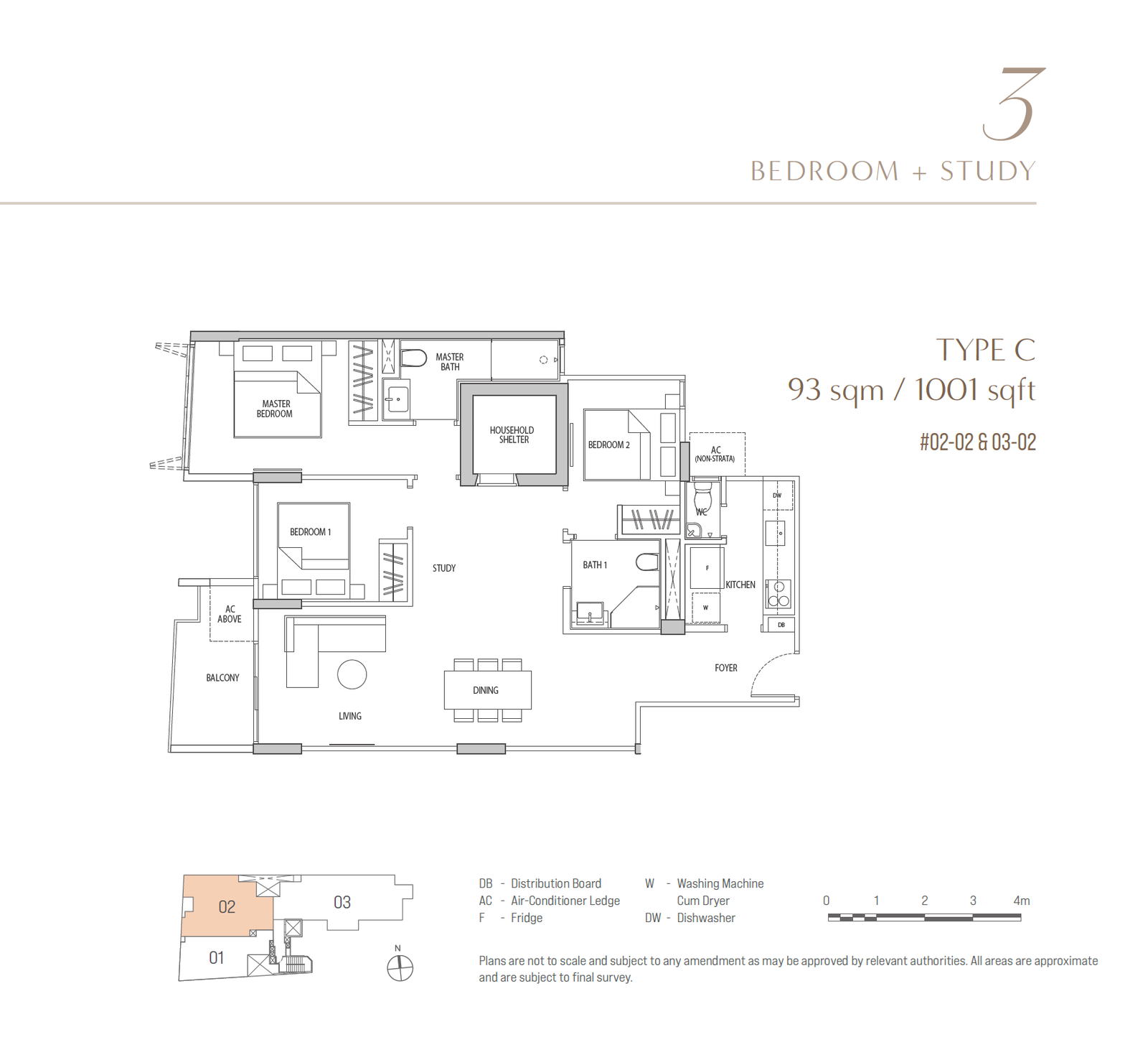 | 3 Bedroom + Study | #03-02 | $1,962,050 | 1,001 | $1,960 |