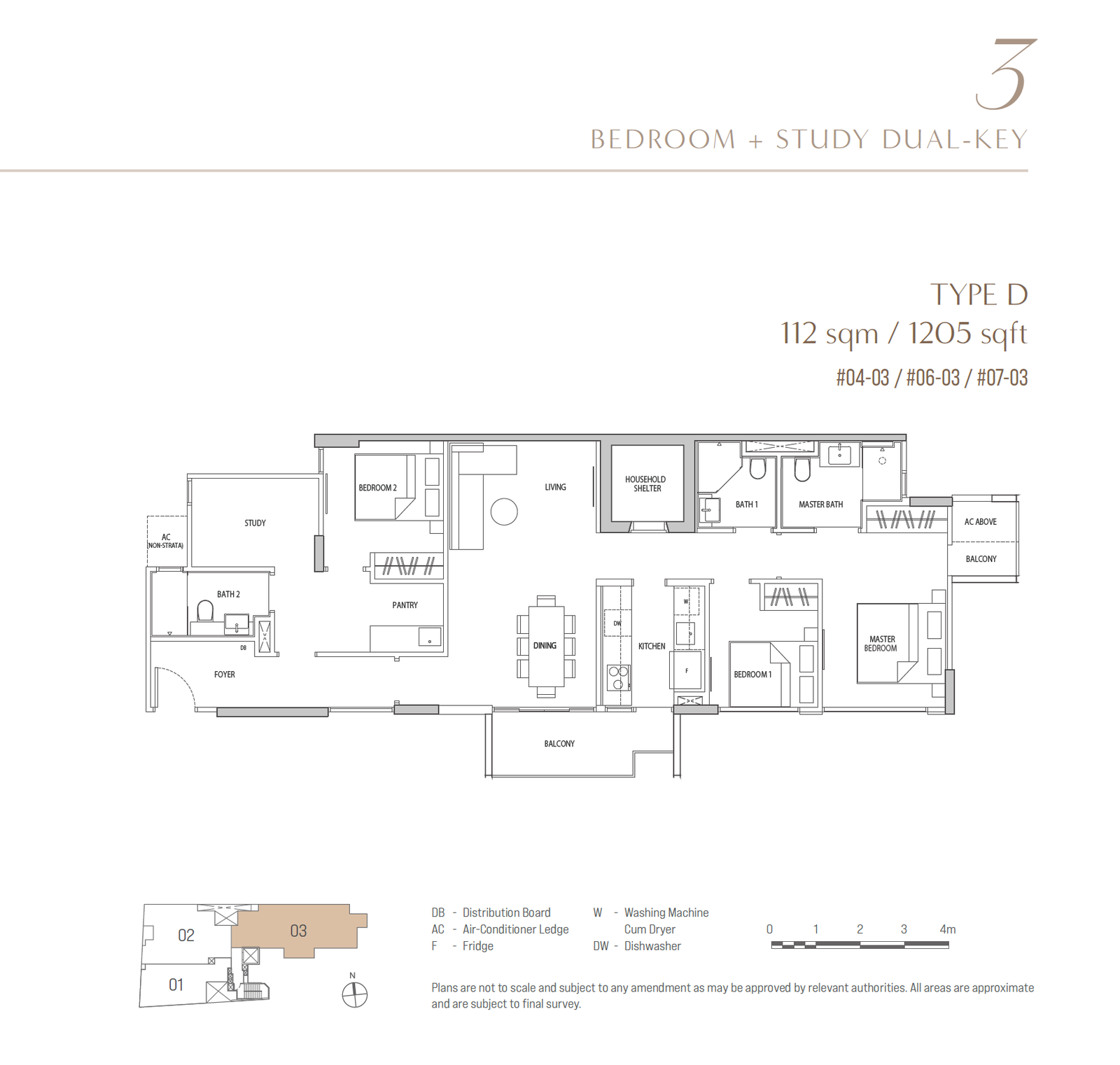 | 3 Bedroom + Study Dual Key | #04-03 | $2,184,533 | 1,205 | $1,813 |